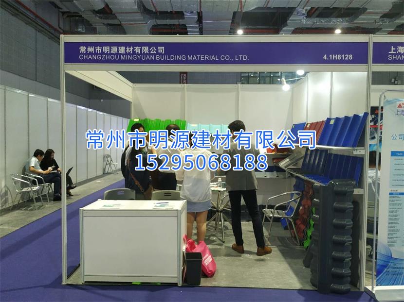 常州市明源建材有限公司(以下簡稱本公司)參加第十一屆上海國際新材料展覽會,本次展會本公司帶了許多公司新型產品為觀眾展示,其中有許多是觀眾需要的產品,引來了多人的關注和咨詢。本公司生產的新型防腐瓦是許多工廠和公司需要的產品,這可以為廣大廠房節(jié)省許多后期維修的費用,還方便了人們的時間和精力,相比彩鋼瓦和鐵皮瓦,防腐瓦是不會生銹的,所以許多客戶都來了解產品。